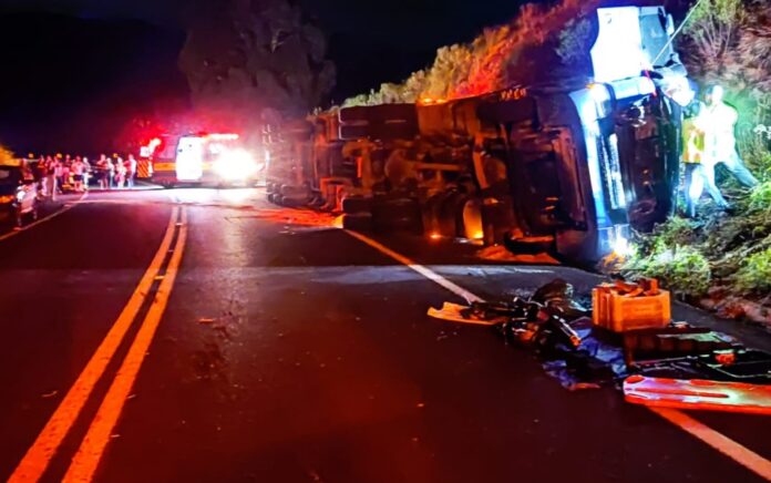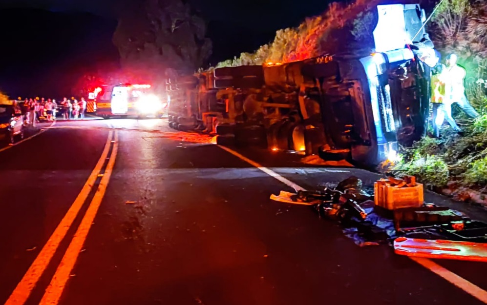 De acordo com a Polícia Militar Rodoviária, o acidente envolveu um caminhão Scania R450, emplacado em Fraiburgo e conduzido por um homem de 38 anos. O veículo seguia no sentido São Joaquim–Painel quando, por motivos ainda a serem confirmados, o motorista perdeu o controle da direção, saiu da pista, tombou e, em seguida, colidiu contra um barranco, ficando com parte do caminhão sobre a rodovia.