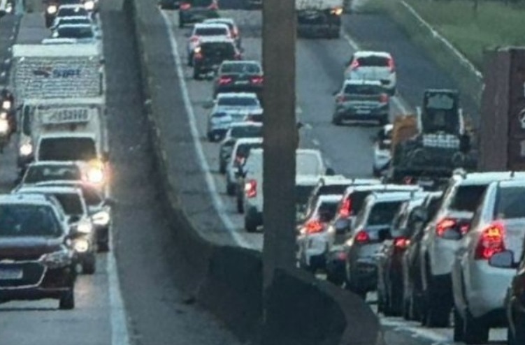Por volta das 18h, o trecho registrava um congestionamento de seis quilômetros. Equipes atuam no local, e o desvio do tráfego está sendo feito pela faixa da esquerda.