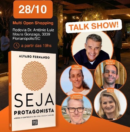 O público terá a oportunidade de participar do evento sobre protagonismo, superação e carreira, que marca o lançamento do livro “Seja protagonista – assuma o controle da sua vida e da sua carreira”, de Alvaro Fernando. A celebração será realizada na Livraria Letraria, no Multi Open Shopping de Florianópolis (SC), no dia 28 de outubro às 19h.