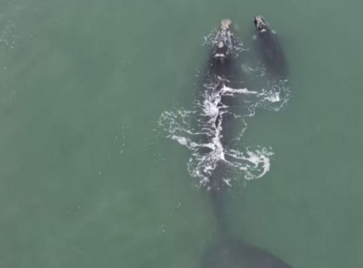 Baleia com filhote aparece na região do Farol