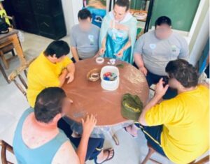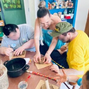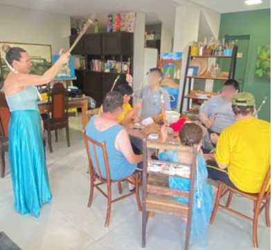 Na terceira oficina, modelaram em argila Os Guardiões do Encanto, transformando o ateliê em um espaço de proteção, acolhimento e inclusão.