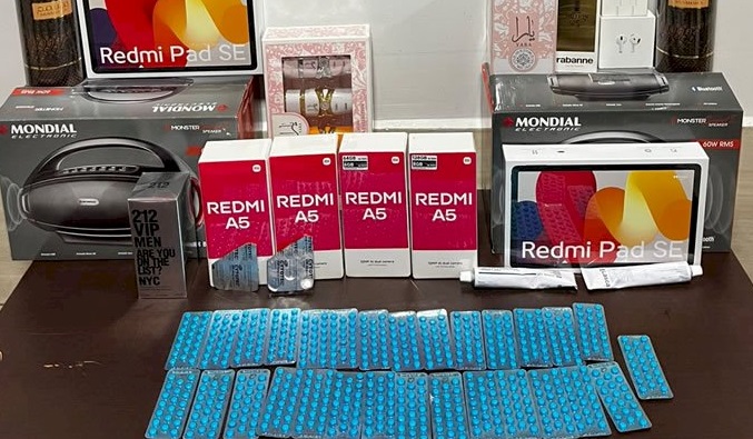 Durante a conferência das mercadorias, foram encontrados eletrônicos, brinquedos e perfumes. Entretanto, o nervosismo de dois ocupantes do automóvel levantou suspeitas. E, com eles, os policiais encontraram comprimidos abortivos e uma bolsa com cerca de 600 comprimidos para disfunção erétil. As duas medicações, de origem paraguaia, têm comercialização proibida no Brasil.