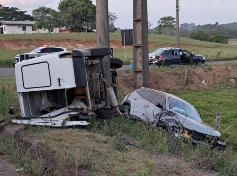 Um acidente de trânsito registrado na noite desta sexta-feira (21), por volta das 18h31, mobilizou equipes de resgate de Criciúma, Içara e Forquilhinha. A colisão frontal ocorreu na Rodovia Governador Jorge Lacerda, no bairro Capão Bonito, envolvendo um Peugeot 2008 e uma Fiat Fiorino.