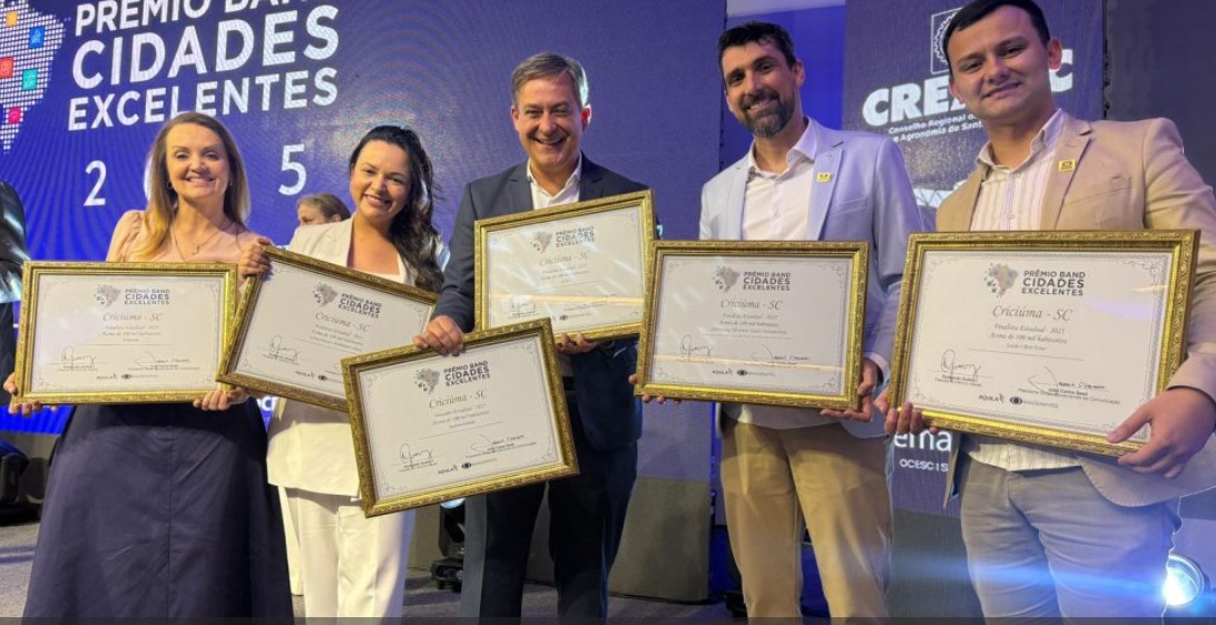 Mais uma vez, Criciúma foi reconhecida na etapa estadual do Prêmio Band Cidades Excelentes, que valoriza boas práticas de gestão pública municipal em todo o Brasil. A cidade venceu a categoria Sustentabilidade, entre os municípios catarinenses com mais de 100 mil habitantes. A premiação aconteceu na noite desta terça-feira (18), em Florianópolis, reunindo gestores públicos de todo o estado para o reconhecimento das cidades que mais evoluíram a partir dos indicadores do Índice de Gestão Municipal Aquila (IGMA).