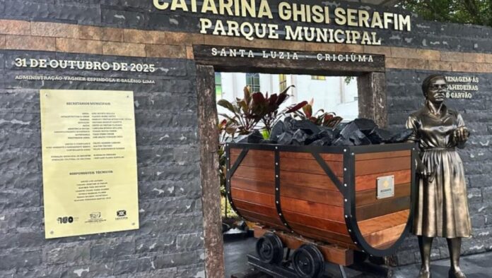 O parque leva o nome de Catarina Ghisi Serafim, uma cidadã que viveu por anos no bairro Santa Luzia e contribuiu para o desenvolvimento da comunidade. Filha de imigrantes italianos, dona Catarina foi escolhedeira de carvão e atuou fortemente em favor dos moradores da localidade. Para reconhecer a história da líder comunitária, a família de Catarina recebeu homenagens ao longo da noite, marcando o legado deixado para as futuras gerações.