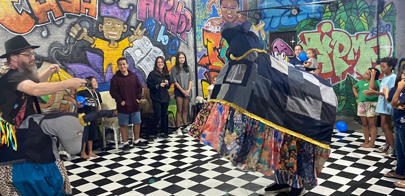Na terça-feira (11/12), logo após a exibição do documentário na Casa do Hip Hop, o grupo promoveu uma roda de boi-de-mamão com a participação das crianças dos projetos realizados no espaço, localizado no bairro Vila Zuleima.
