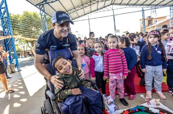 Durante a visita, o líder da temporada 2024 da Stock Car, que vai disputar a oitava etapa do ano neste fim de semana, no Velopark, em Nova Santa Rita (RS), conheceu de perto as ações realizadas pelo ICF — que incluem doações de materiais, móveis e serviços de limpeza, além de obras de recuperação da escola.