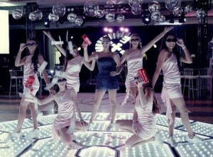 Durante a apresentação, Lia entrou na pista caracterizada como uma personagem da série, acompanhada por bailarinos, criando um clima de suspense e interação com os convidados, que até então não sabiam do que se tratava a encenação. No meio da coreografia, a aniversariante realizou uma troca de figurino na própria pista de dança, marcando o início oficial da festa.