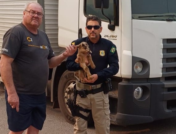 Um caminhoneiro encontrou o filhote de cabrito e o levou até a Unidade Operacional da Polícia Rodoviária Federal (PRF).