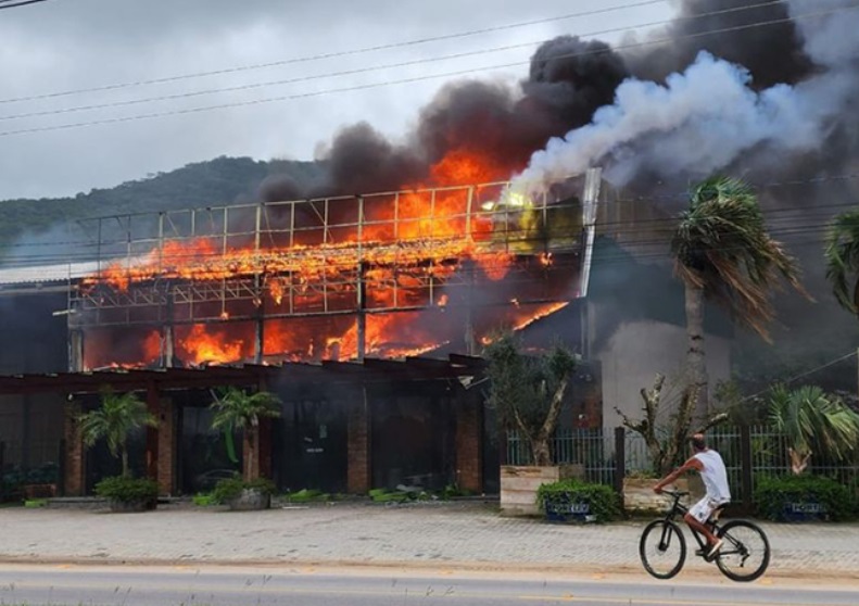 Um incêndio de grandes proporções atingiu uma floricultura e uma casa ontem, às margens da SC-434, no bairro Areias de Palhocinha, em Garopaba. O Corpo de Bombeiros foi acionado por volta das 10h45 para atender a ocorrência em uma edificação comercial e residencial com área aproximada de 600 metros quadrados.