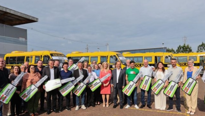 O governador Jorginho Mello e a secretária de Estado da Educação, Luciane Ceretta, entregaram 20 ônibus escolares para as redes públicas de ensino de Santa Catarina, nesta quinta-feira, 13. O evento, realizado em Florianópolis, representa a primeira etapa da iniciativa que distribuirá, ao todo, 100 novos veículos até o início do ano letivo de 2026.