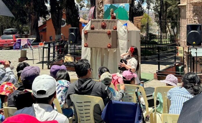 O ator e bonequeiro Marcelo Ciepielewski e a atriz Victória João estiveram em cena em uma escola, no Centro Cultural Wawastinkuy Wasi, e também na Praça Mirante Montículo, no Centro de La Paz. Conforme Victória, a apresentação na escola foi destinada a alunos que têm aulas da disciplina de português. “Assim como nós temos aulas de espanhol, na escola eles têm português. Então foi também um exercício para eles poderem treinar essa conversação”, explica.