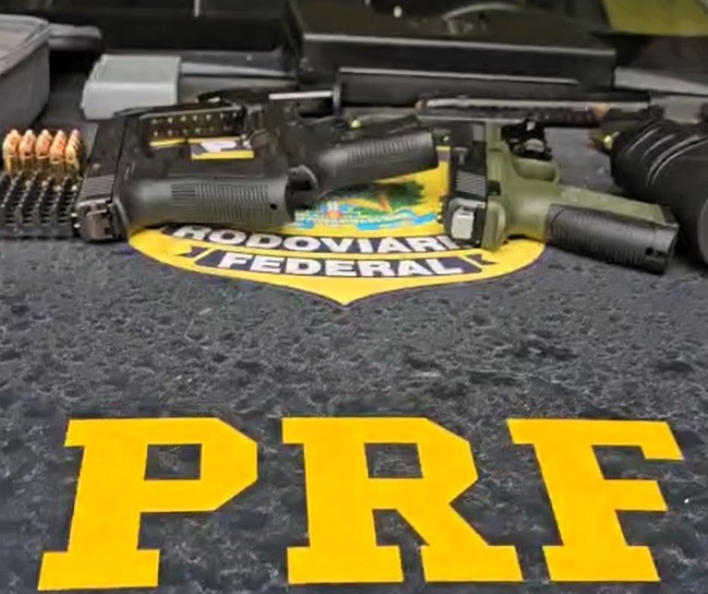 Policiais rodoviários federais prenderam na tarde de sábado (8), em Joinville na BR-101, um homem que transportava três pistolas 9mm de uso restrito, seis carregadores e 163 munições.