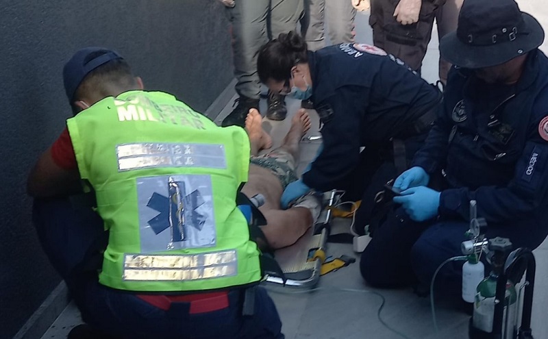 Segundo informações repassadas pelas equipes de resgate, o idoso foi encontrado inconsciente, com suspeita de traumatismo cranioencefálico e apresentando otorragia (sangramento pelo ouvido), quadro que indica possível lesão grave na região da cabeça.