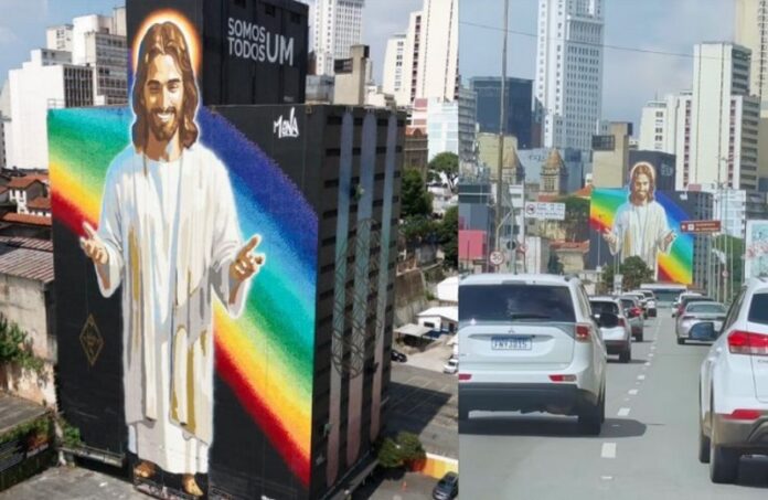 “A obra que eu fiz foi um trabalho voluntário, uma doação pra cidade de São Paulo. Eu recebi essa intuição da espiritualidade pra fazer Jesus nesse momento em que a gente tá vivendo tantos desafios na humanidade, com guerras rolando, uma polaridade grande que está afastando as pessoas uma das outras. E a mensagem mais universal do grande mestre mais poderoso que eu poderia trazer através da arte para ajudar a elevar a vibração da cidade é o mestre Jesus”, disse o artista plástico Mena, autor do mural de arte urbana, em entrevista ao Só Notícia Boa.