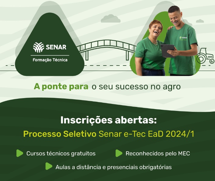 Gratuitas e semipresenciais, as formações têm duração de quatro a cinco semestres e são voltadas para pessoas do meio rural que desejam ampliar as oportunidades de atuação no setor agropecuário. Os interessados podem se inscrever pelo site até o dia 19 de janeiro: http://etec.senar.org.br/