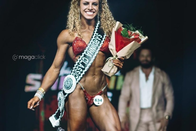 Neste domingo (8), ela foi campeã da categoria Bikini Open B e ainda faturou o prêmio de campeã overall da noite, no campeonato Sardinha Classic, em Balneário Camboriú.