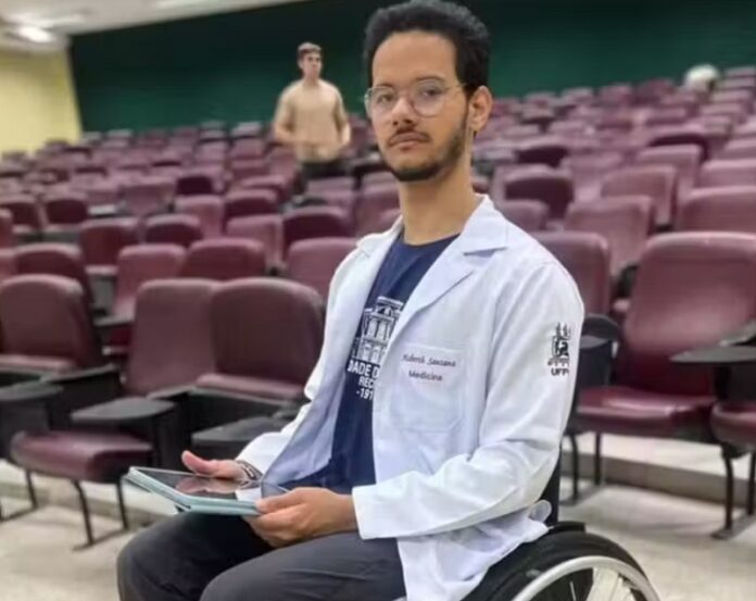 Com as dificuldades da reabilitação, Heberth chegou a adiar a matrícula por um ano e nove meses, mas voltou, já está cursando Medicina, e hoje ele luta para PCDs tenham mais acessibilidade no campus para seguirem seus sonhos.