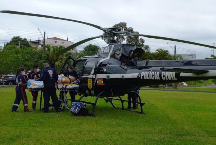 O paciente apresentava múltiplos traumas no tórax e nos membros superiores e inferiores. Após atendimento médico no local e estabilização, ele foi transportado pela aeronave até Criciúma e, em seguida, encaminhado por via terrestre ao Hospital São José, referência em trauma na região.