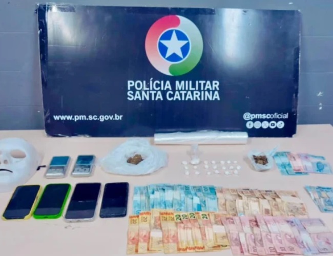 Na noite dessa sexta-feira (6), por volta das 18h44, um grupo de quatro pessoas foram detidas por tráfico de drogas em Orleans. A ocorrência foi registrada em uma residência localizada no bairro São Jerônimo, a aproximadamente 100 metros de uma escola de educação infantil. Segundo a PM, após denúncias recorrentes de comércio de entorpecentes em uma residência no bairro, os policiais militares realizaram monitoramento no local durante o fim da tarde.