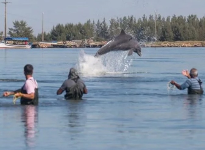 A pesca com botos é considerada um fenômeno raro no mundo. Nessa prática, os pescadores aguardam os sinais dos animais, que ajudam a conduzir cardumes de peixes para perto das redes. A relação de cooperação entre humanos e botos ocorre de forma natural e vem sendo mantida ao longo de gerações.