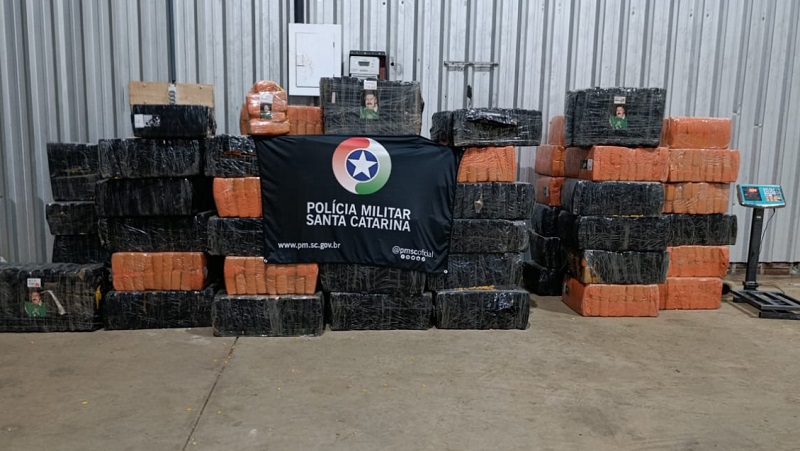 A Polícia Militar de Santa Catarina (PMSC), por meio do 2º Batalhão de Polícia Militar de Fronteira (BPM/Fron), atendeu, na madrugada deste sábado, uma ocorrência de tráfico de drogas que resultou na localização de um grande depósito de entorpecentes às margens da BR-282, no bairro Primavera, em Pinhalzinho.