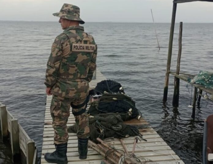 A ação ocorreu na localidade de Garopaba do Sul e faz parte do esforço de intensificação do patrulhamento da corporação para coibir a pesca ilegal.