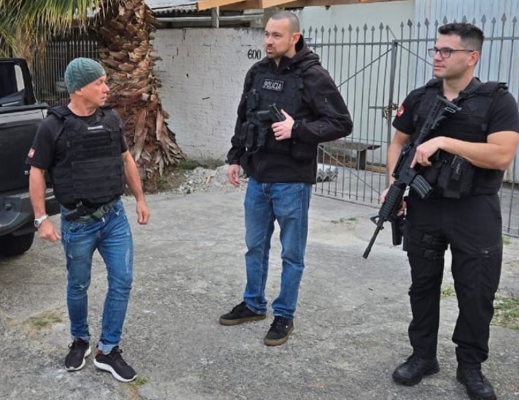 No dia de hoje, às 6h, Policiais Civis de Santa Rosa do Sul, com apoio de Policiais do COPE (Centro de Operações Especiais) da Polícia Civil do Paraná, deram cumprimento a mandando de busca e apreensão expedido pelo Poder Judiciário de Sombrio após representação da Autoridade Policial.