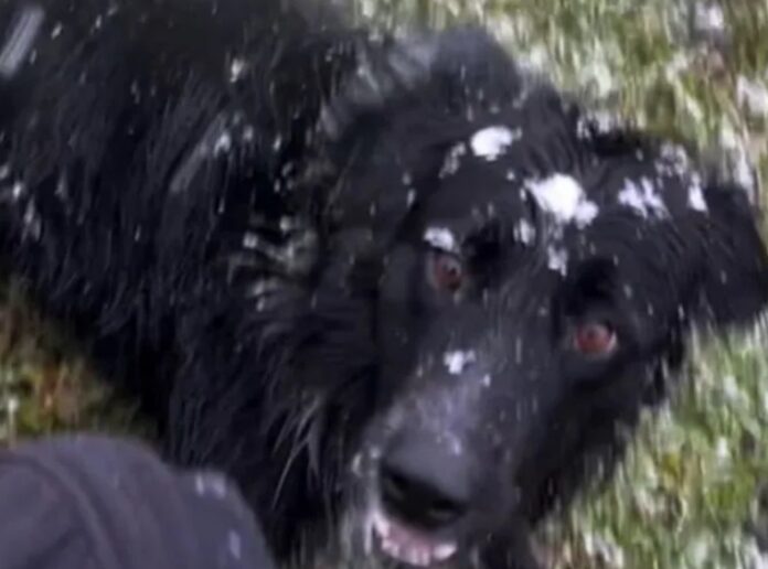 Sabrina gravava a irmã relatando a ocorrência de neve quando o cachorro disparou “eufórico”; o animal nunca havia visto neve antes.