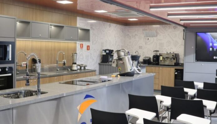 Além disso, conta com uma cozinha industrial completa, com fornos, fogão de indução, freezer, geladeira, cafeteira profissional, adega, utensílios de ponta, mesas de preparo de alimentos, além de uma estrutura para transmissão das aulas com TV interativa, notebook, câmera fotográfica, impressora, e demais equipamentos.