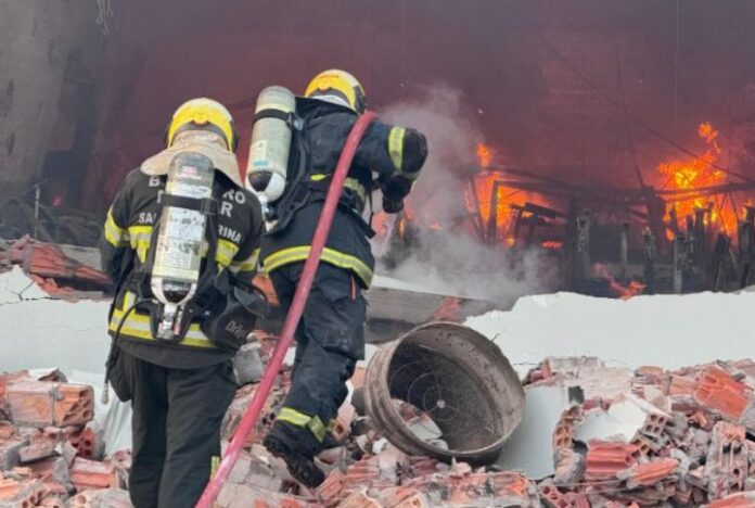 Um incêndio de grandes proporções atingiu uma fábrica do setor têxtil na tarde desta terça-feira (13), por volta das 16h05, na Rua Ângelo Sartor, bairro Cidade Alta, em Turvo. Não houve vítimas.